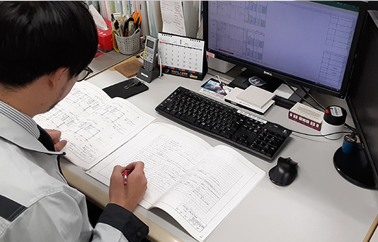 現状の建物と設計図書を照合し、各部分の変更の有無を確認するとともに、建物の構造劣化状態を調査します。